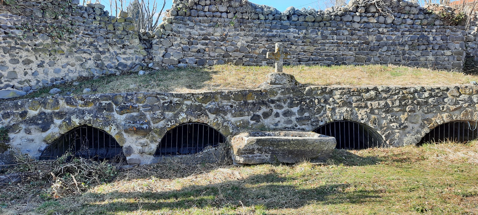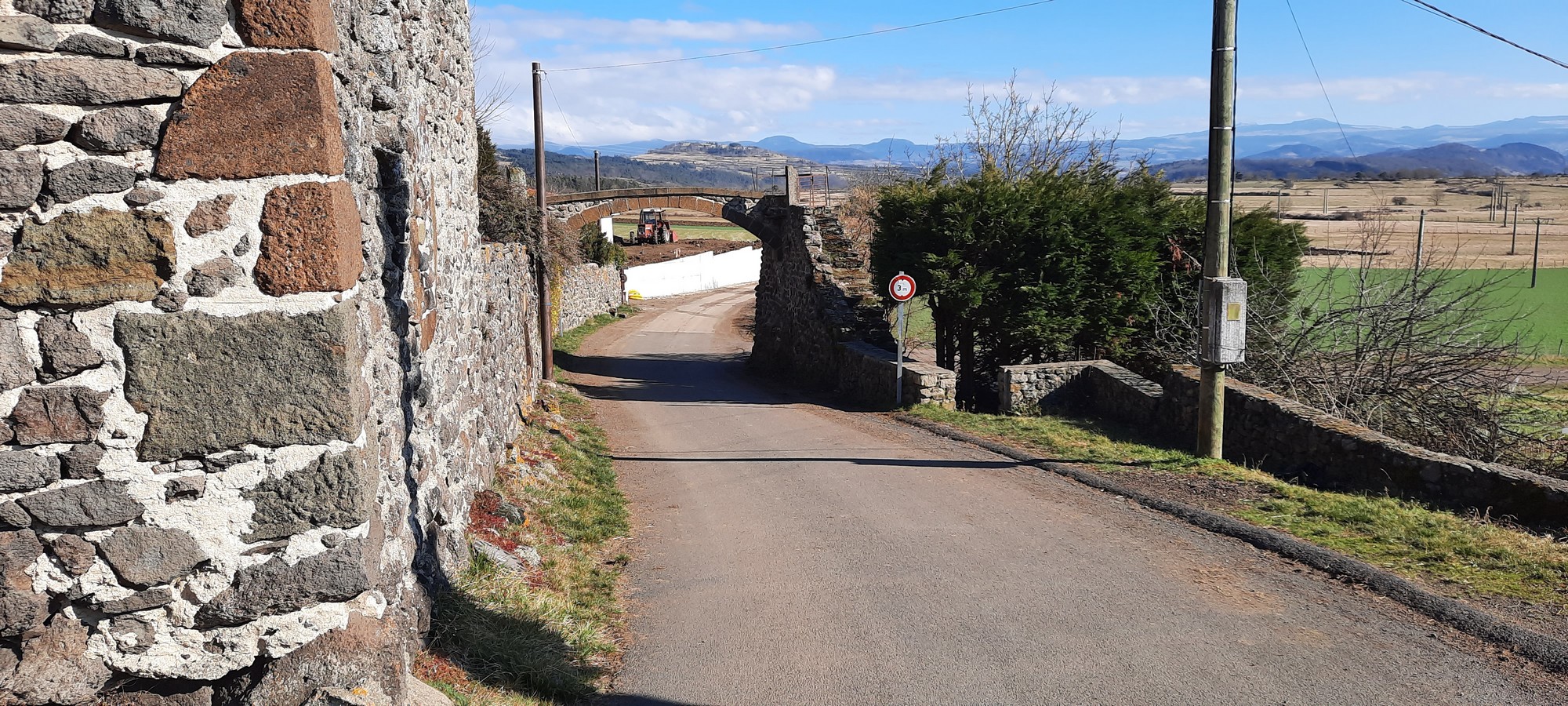 Le passage surélevé à l'entrée de Chambeyrac.     Les fontaines de Chambeyrac.